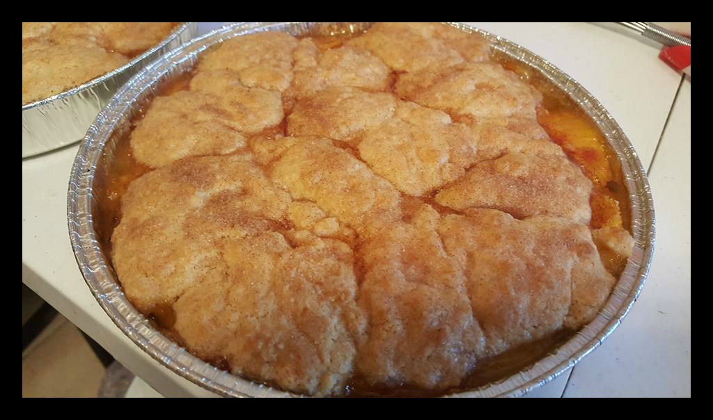 This is where it all began. In the summer of 2015, the local peaches were delicious! I started making peach pies and before I knew it, I was making them for friends and family and a pie business was born! This classic peach pie is made with local fresh peaches, a special blend of sugar and spices in a flaky double crust. Also available with a crumble topping.
