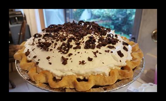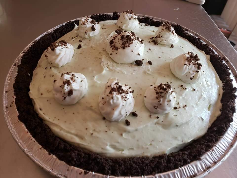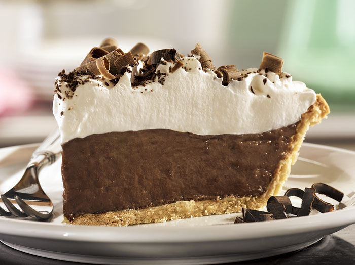 Creamy, chocolaty filling in a flaky crust, topped with real whipped cream and dark chocolate curls.