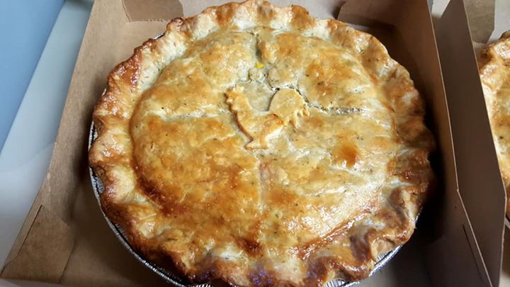One of our favorites! Made with white meat chicken, fresh herbs, onion, red potatoes, carrots, peas, corn and creamy gravy, baked in a thick, flaky rosemary/thyme crust.